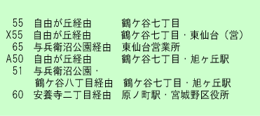 下の行き先をクリックすると仙台市交通局のバス時刻表が表示されます。